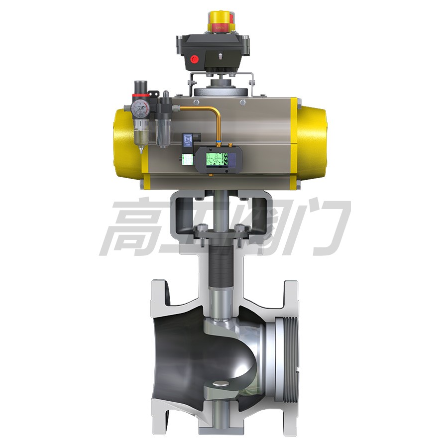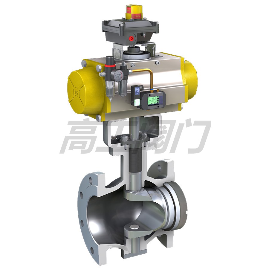 高工閥門生產(chǎn)銷售的API氣動V型調(diào)節(jié)球閥是一種直角回轉(zhuǎn)結(jié)構(gòu)的高級控制閥,它與閥門定位器配套使用,可實現(xiàn)比例調(diào)節(jié);與二位五通電磁閥及控制箱配套使用,可實現(xiàn)開關控制。氣動V型球閥閥芯設計成帶有特殊形狀的V型缺口,具有精確的截流物性和控制功能,適用于各種控制場合,結(jié)構(gòu)緊湊,體積小,可緊臥安裝等優(yōu)點。氣動V型調(diào)節(jié)球閥適用于氣體、液體、固態(tài)顆粒狀介質(zhì)的控制。由于閥芯和閥座之間是無間隙回轉(zhuǎn),所以具有很大的剪切力及自潔性能,尤其適用于含有纖維性或有微小固體顆粒的懸濁液及固態(tài)顆粒狀的控制。因此氣動V型球閥本產(chǎn)品可廣泛用于石油、化工、造紙、化纖、電力、冶金、制藥、環(huán)保等工業(yè)部門的自控系統(tǒng)。