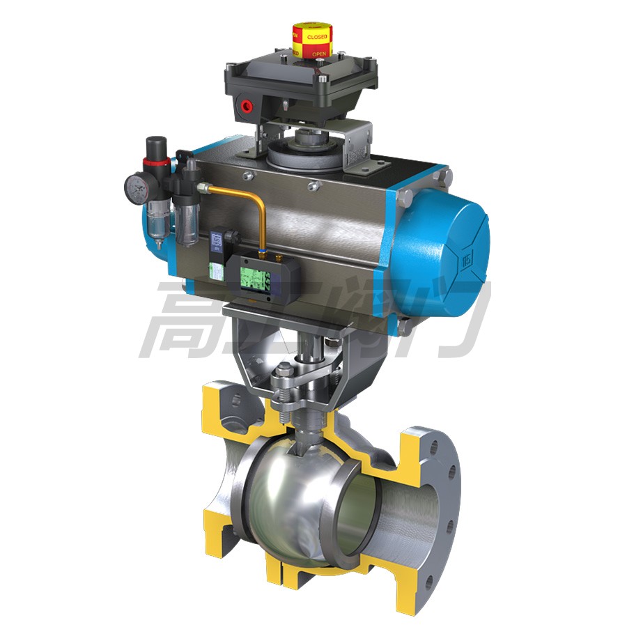采用新型系列GT型氣動(dòng)執(zhí)行器,有雙作用式和單作用式(彈簧復(fù)位),齒輪齒條傳動(dòng),安全可靠;大口徑閥門采用系列AW型氣動(dòng)執(zhí)行器拔叉式傳動(dòng),結(jié)構(gòu)合理,輸出扭矩大,有雙作用式和單作用式。
