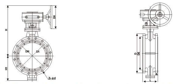 | 公稱通徑DN(mm) | L | D | D1 | D2 | b | Z-Φd | D0 | H1 | H | ||